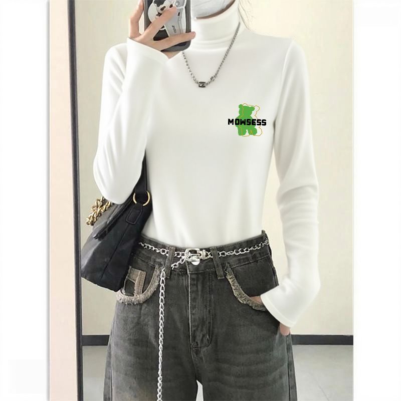 双面德绒2025白色长袖T恤女学生修身新款半高领小众潮流ins上衣服