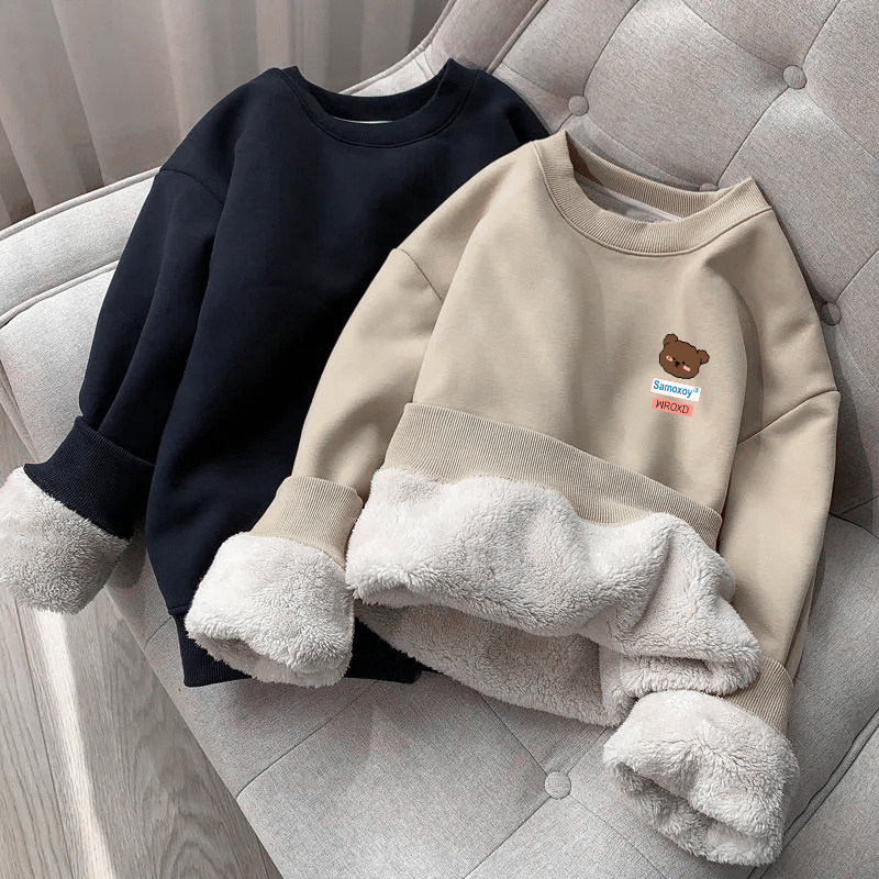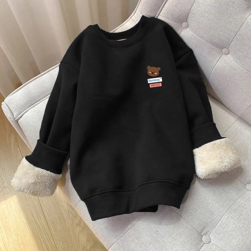 冬季保暖羊羔绒套头卫衣男女宽松休闲打底上衣服港风加绒加厚外套
