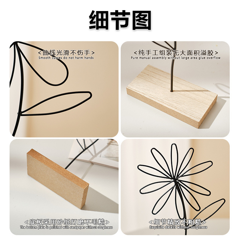 北欧铁艺装饰品密度板底座客厅电视柜酒柜创意工艺品家居花朵摆件