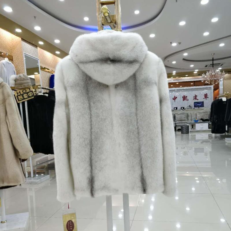 潮男士夹克冬季进口貂大衣皮草男外套十字貂真皮衣水貂毛整貂带帽