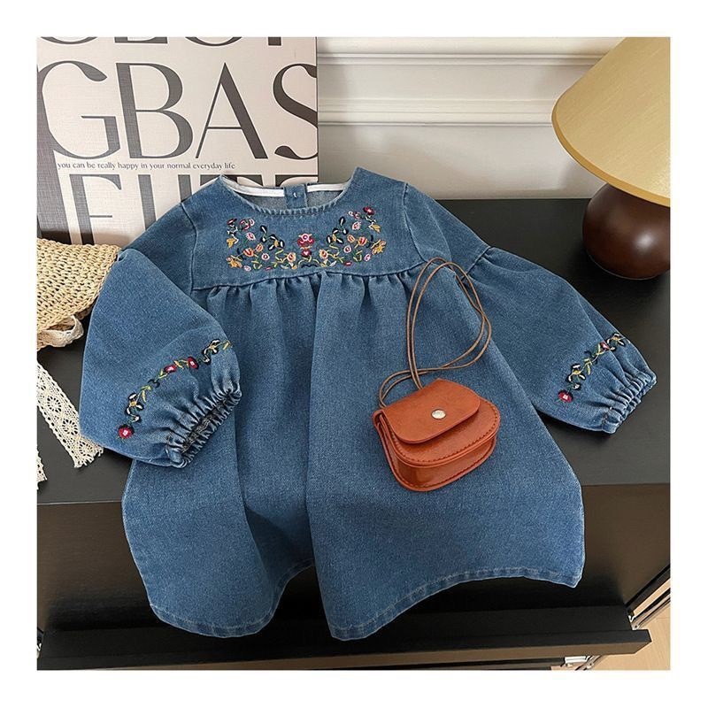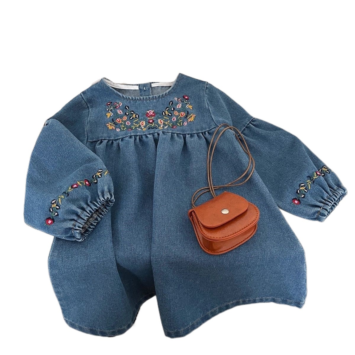 儿童春秋童装新品女童软牛仔绣花连衣裙可爱长袖裙子韩版洋气百搭