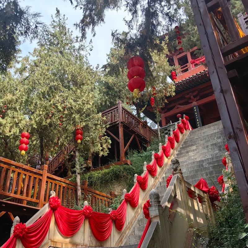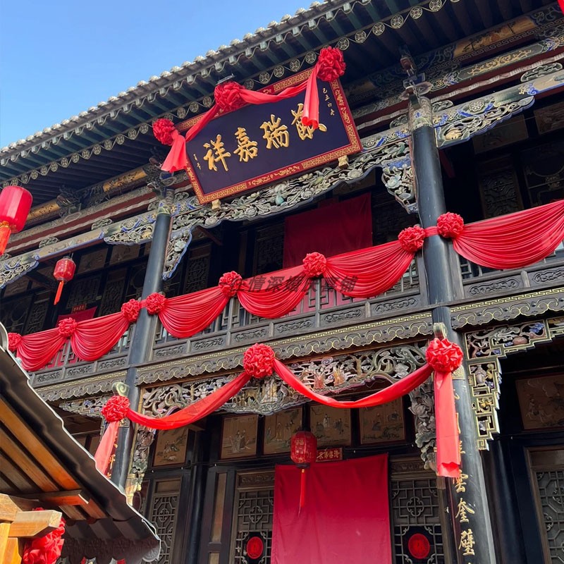 新年大红花球景区寺庙古城古街古村装饰拉花护栏路引布置红绸缎布