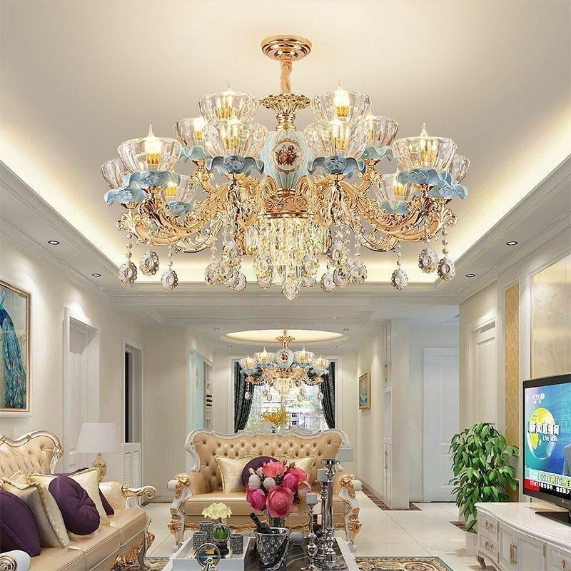 欧式客厅灯家用水晶吊灯大厅别墅奢华陶瓷2024年新款卧室高档灯具