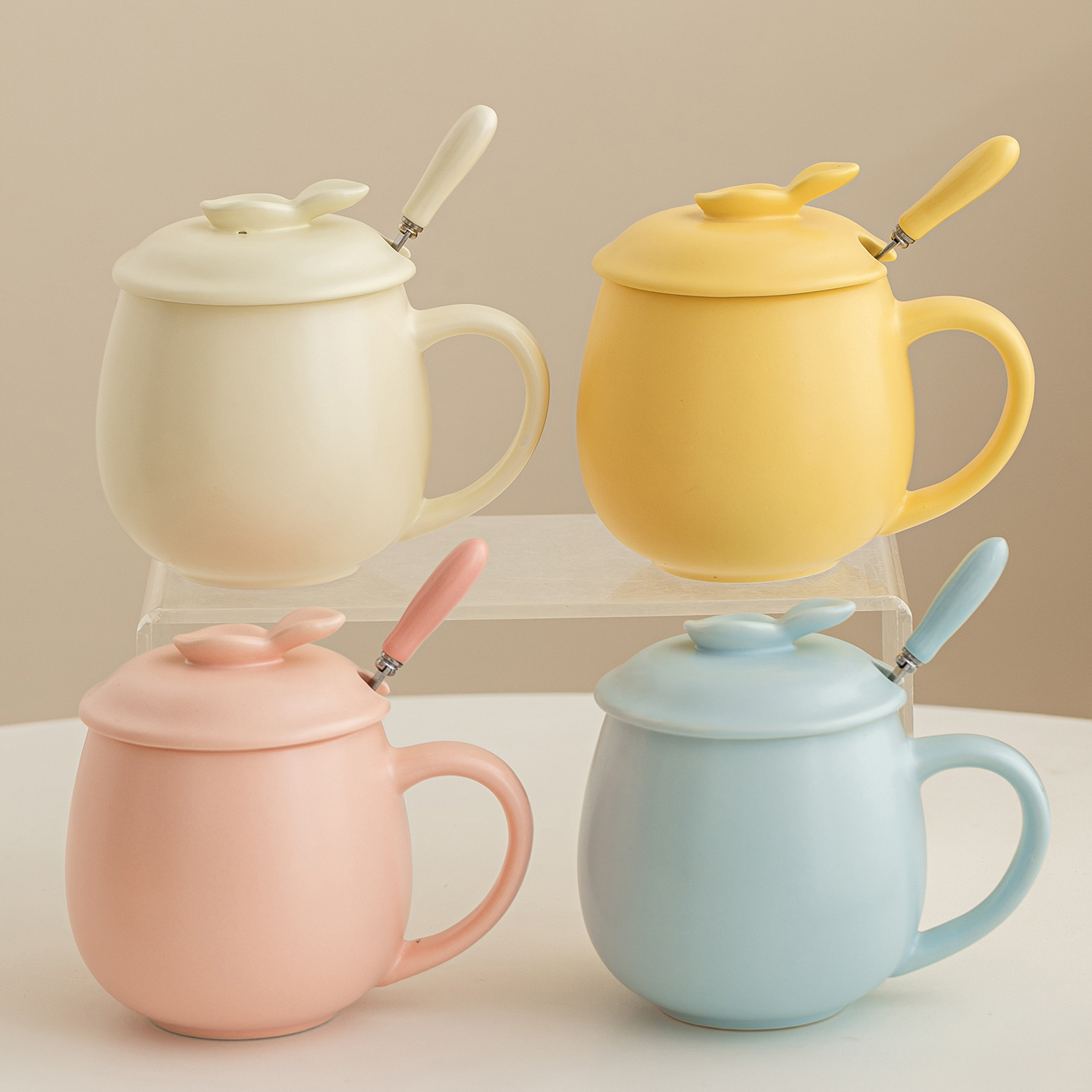 创意陶瓷杯可爱早餐杯个性杯子水杯咖啡杯情侣杯马克杯带盖勺定制