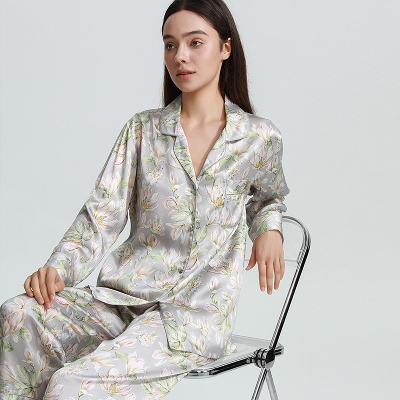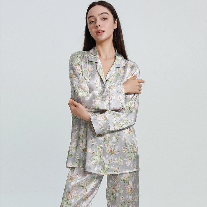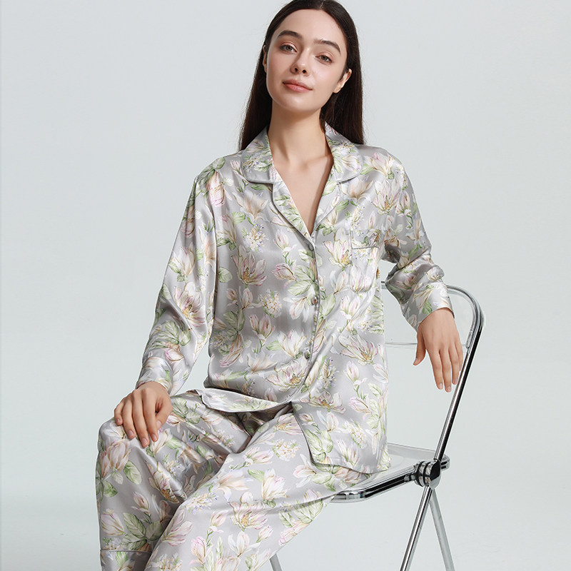 宽松女士真丝睡衣家居服长袖套装