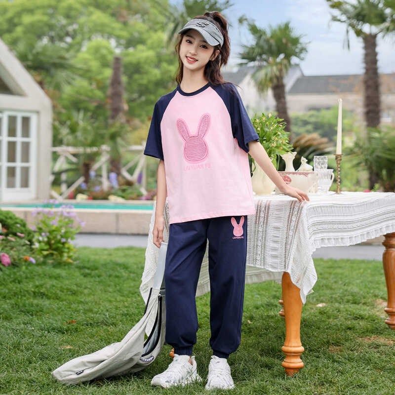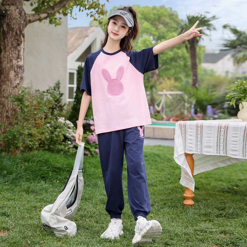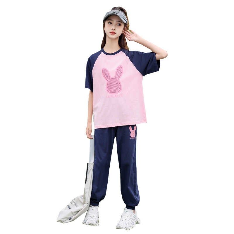 女童运动套装夏装洋气2025新款女大童夏季短袖两件套儿童纯棉休闲