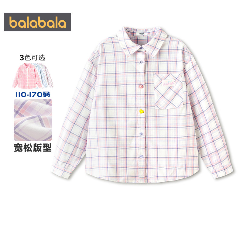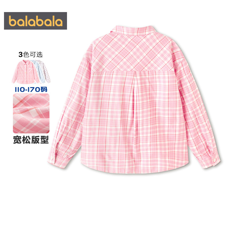 巴拉巴拉女童衬衫中大童格子衬衣春装2026新款童装儿童休闲外套潮