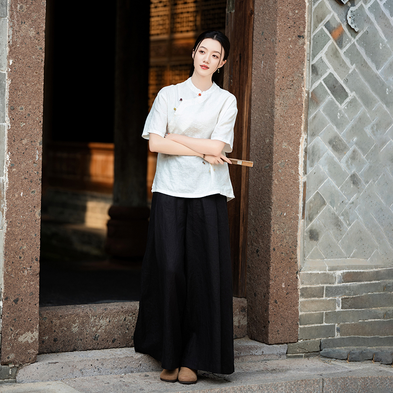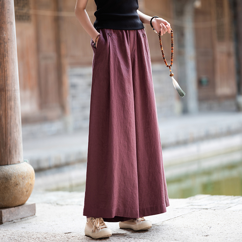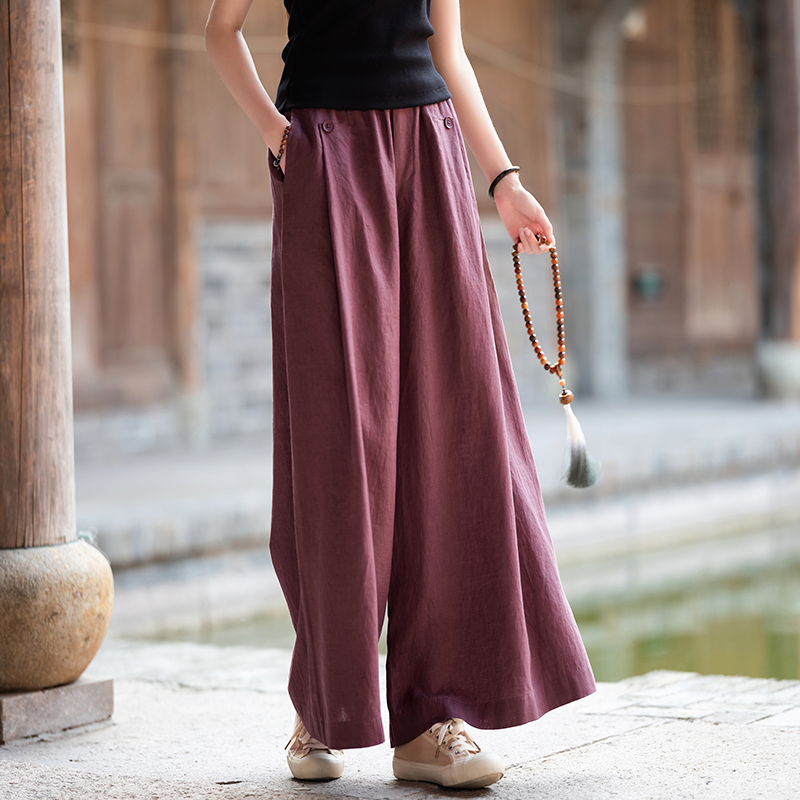 zowesfun亚麻复古高腰直筒阔腿裤