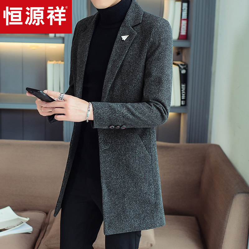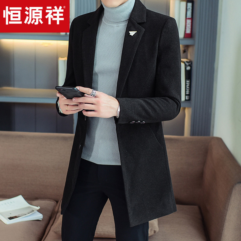 恒源祥羊毛呢子韩版潮流男士大衣