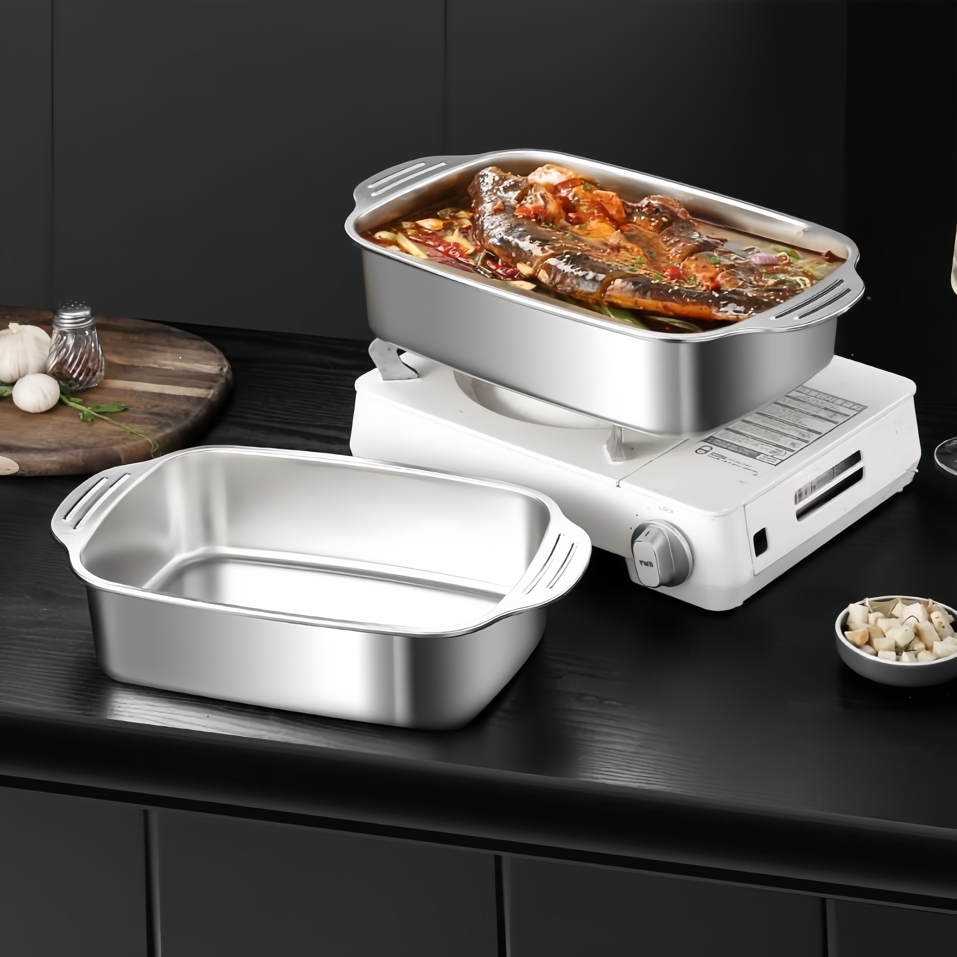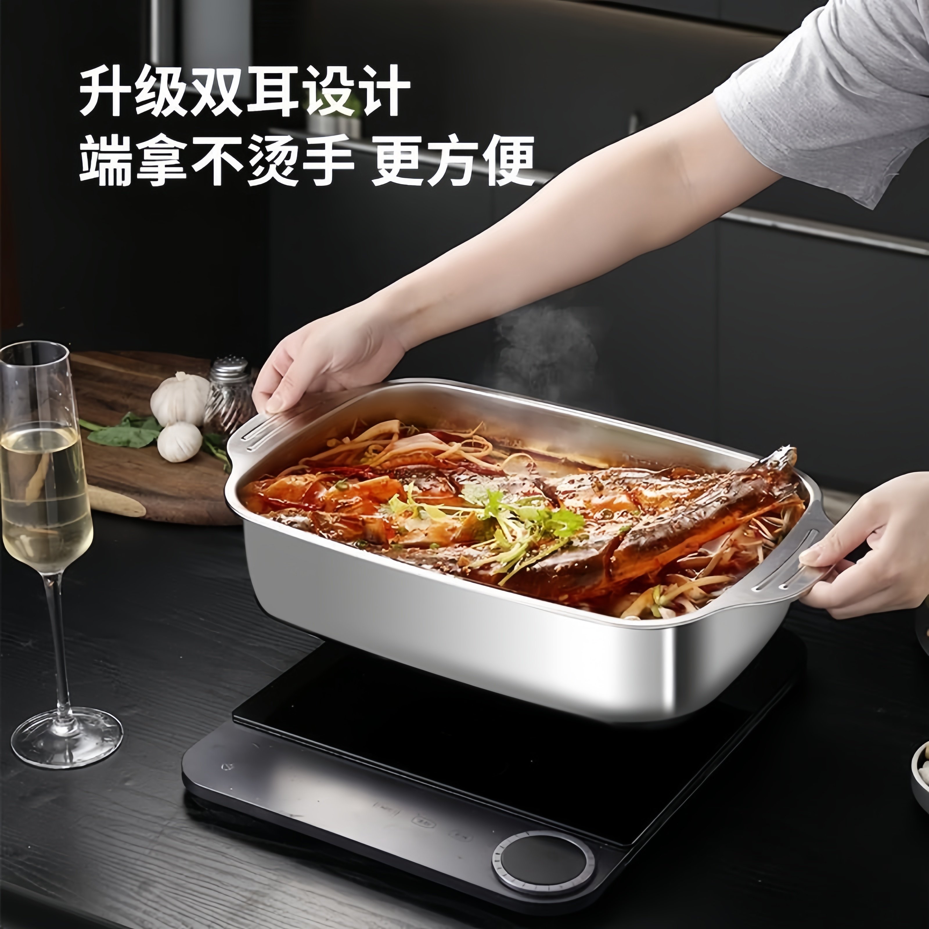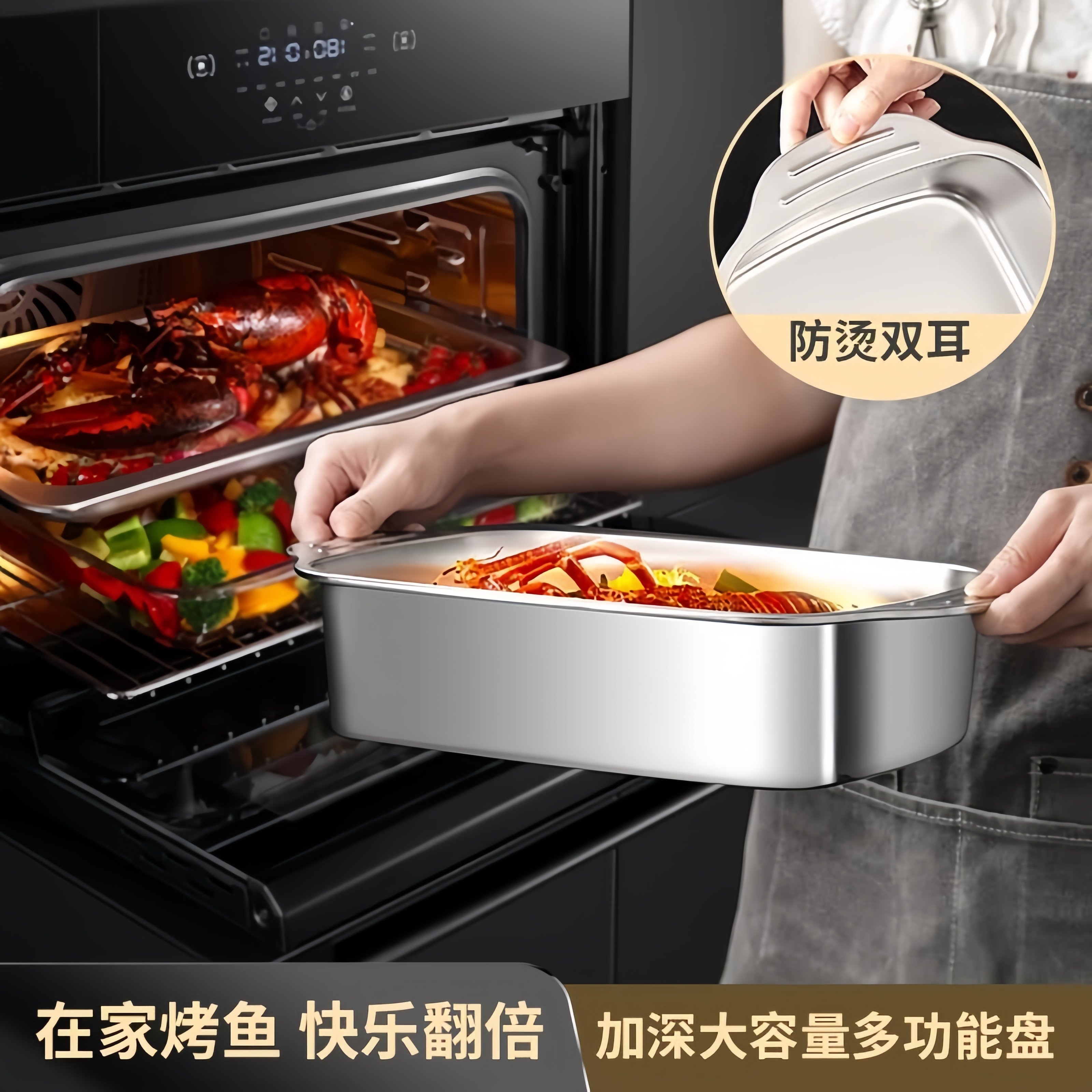316不锈钢烤鱼盘长方形带盖家用烤鱼专用托盘大容量加深海鲜烤盘