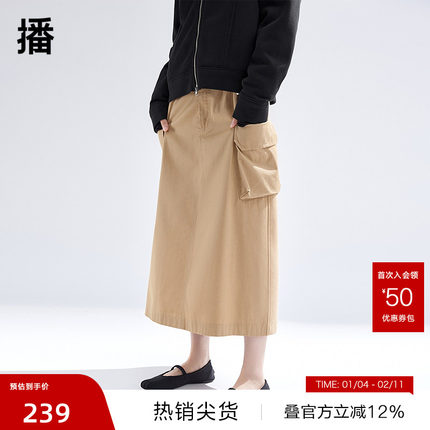 播卡其色工装半身裙女商场同款高腰百搭机能风户外裙子BDR1BD0326