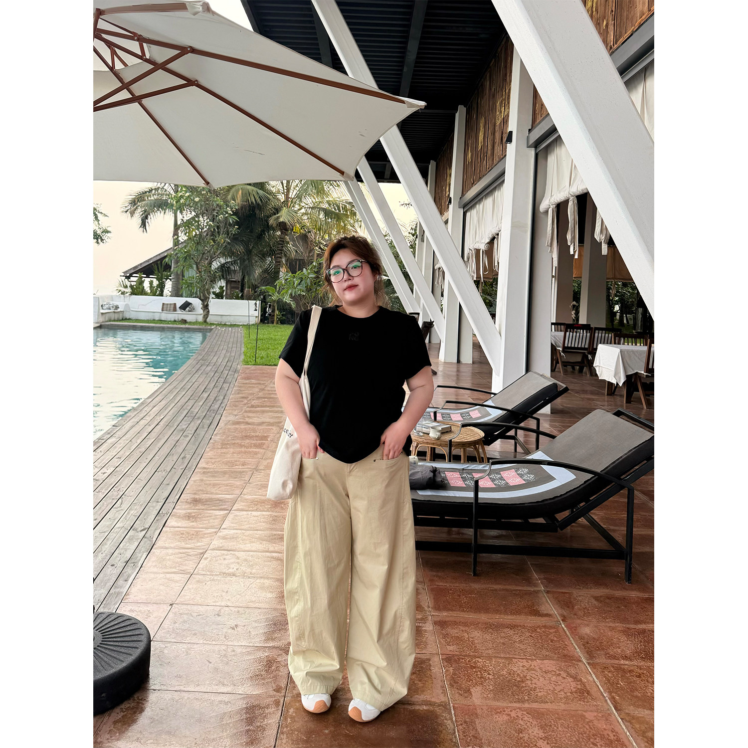 老章和小胖PONGKIKI辣妹弯刀工装长裤女大码百搭显瘦全棉休闲裤夏