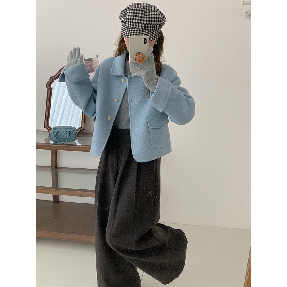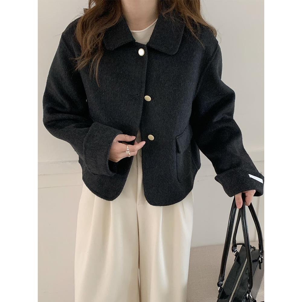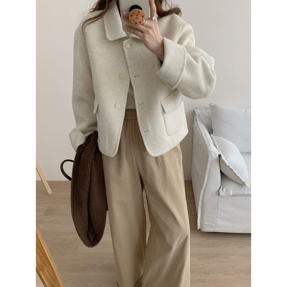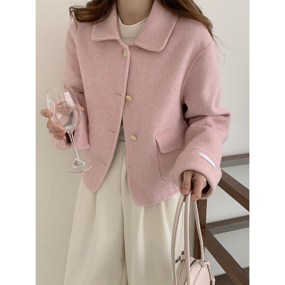2025新款娃娃领羊毛呢外套女短款减龄小香风双面羊绒大衣韩版洋气
