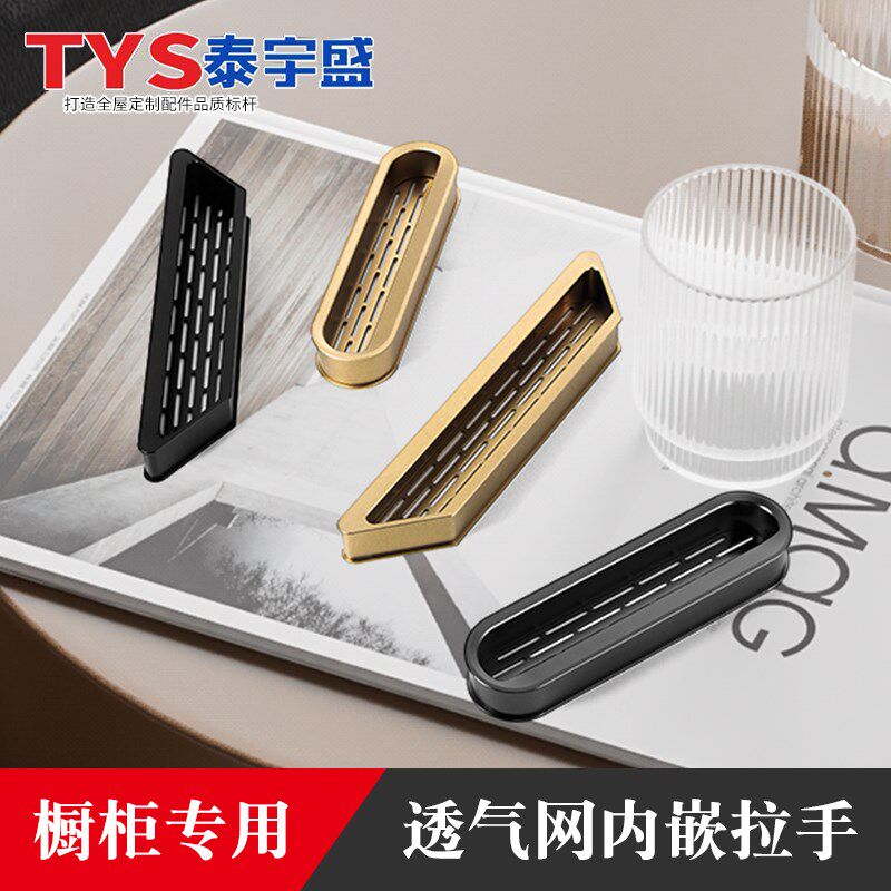 厨房橱柜门免拉手透气网内嵌式拉手嵌入式暗装隐形透气孔格栅把手