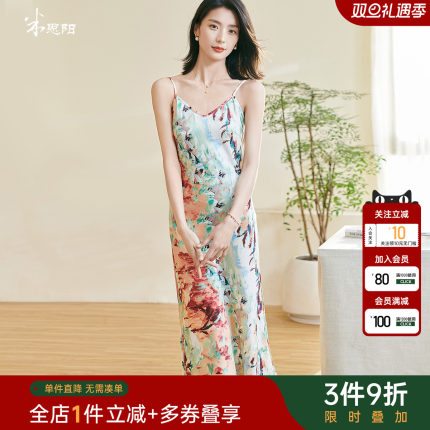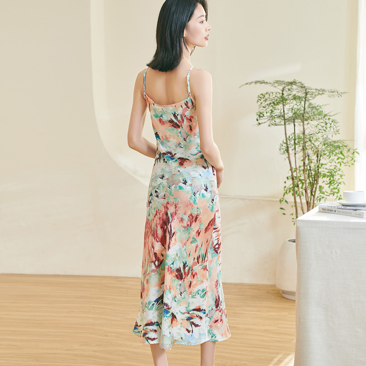 米思阳2025秋季新款优雅气质印花吊带裙修身无袖搭配连衣裙女0396