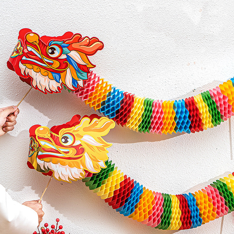2026新款元宵节装饰灯笼小马拉花儿童手提蜂窝舞龙花灯拍照道具