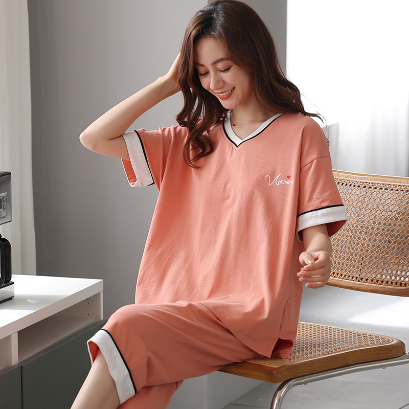 潘琪美凉感夏季睡衣女短袖纯棉七分裤高级感夏款薄款家居服夏天