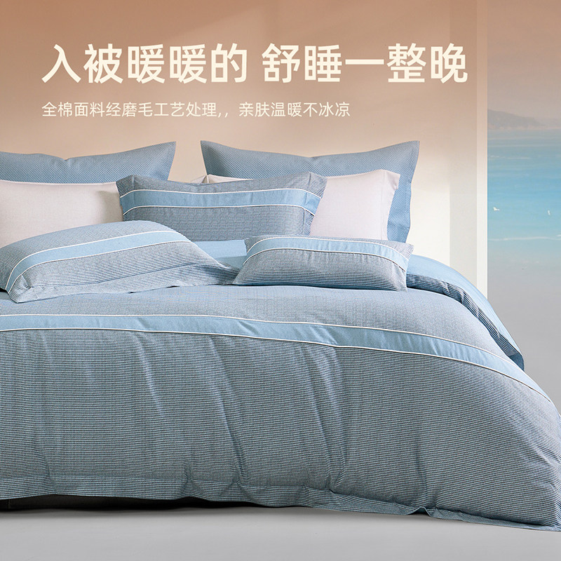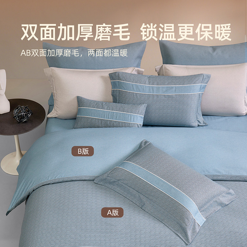 梦洁家纺双面磨毛四件套全棉纯棉100秋冬加厚被套床品2025新款