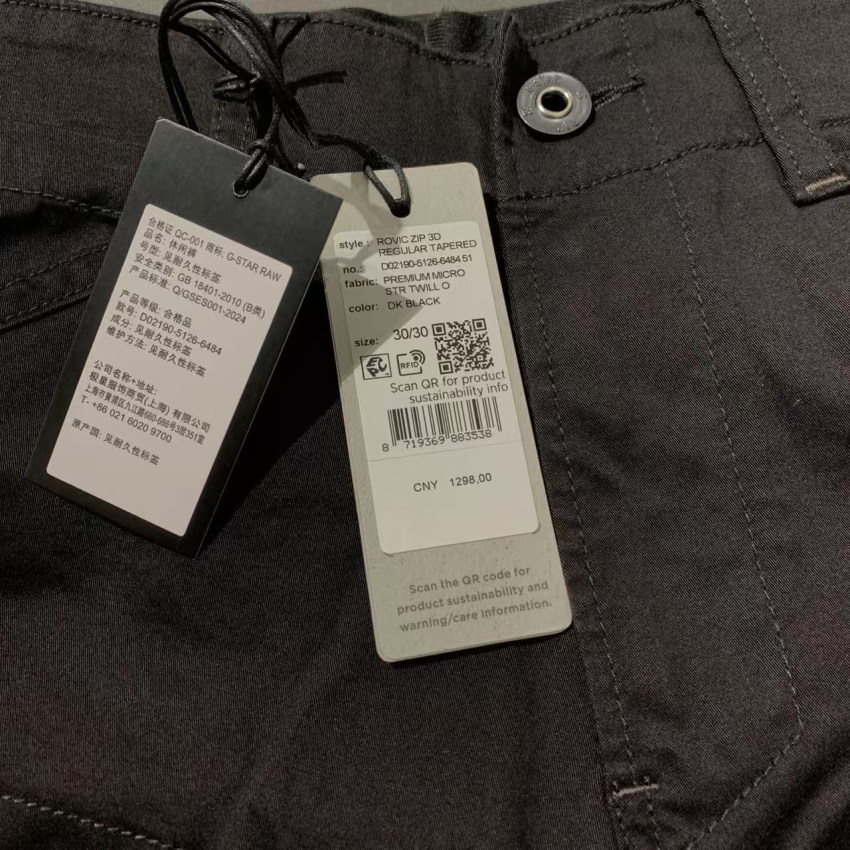 G-STAR专柜正品男潮流3D剪裁直筒版潮帅工装裤帆布裤D02190黑灰色