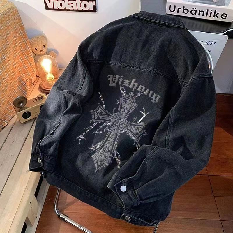 美式ins复古牛仔外套男春秋季潮牌高街宽松oversize工装夹克上衣