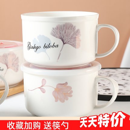 陶瓷泡面碗饭碗碗带盖带手柄保鲜碗方便面碗便当盒汤碗可微波炉
