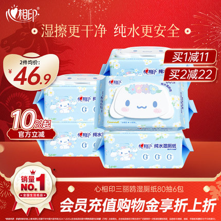 【春节发货】心相印三丽鸥湿厕纸纯水湿纸巾家庭实惠厕所女士80抽