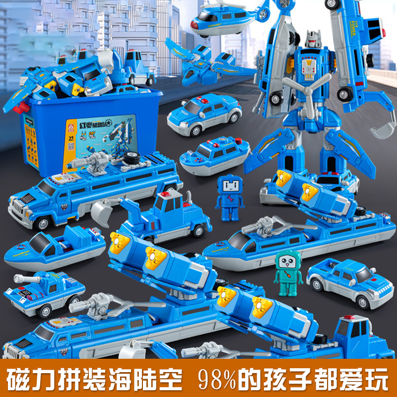 磁力拼接玩具儿童积木拼装益智变形汽车工程车金刚机器人男孩礼物
