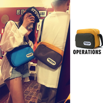 原创撞色日韩潮牌旅行情侣男女斜挎包方包防水单肩包胸包户外休闲