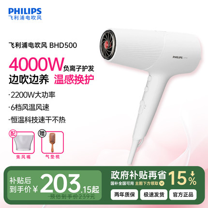 飞利浦电吹风机家用大风力负离子便携护发正品官方旗舰店蓬蓬筒