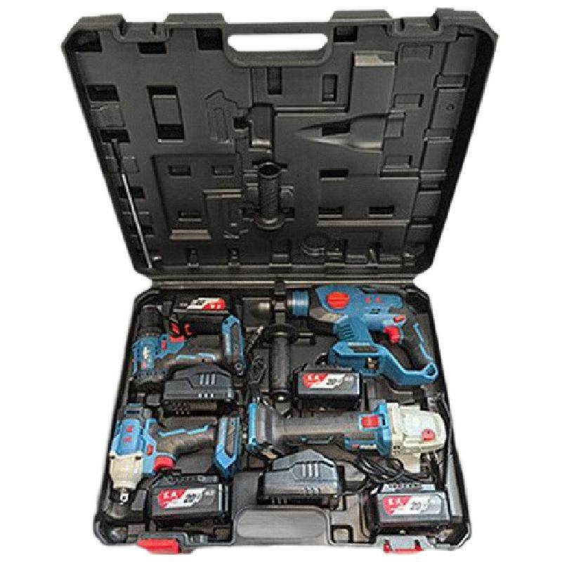 锂电四件套工具箱充电电锤电动扳手角磨机电钻套装两/三/件套塑箱