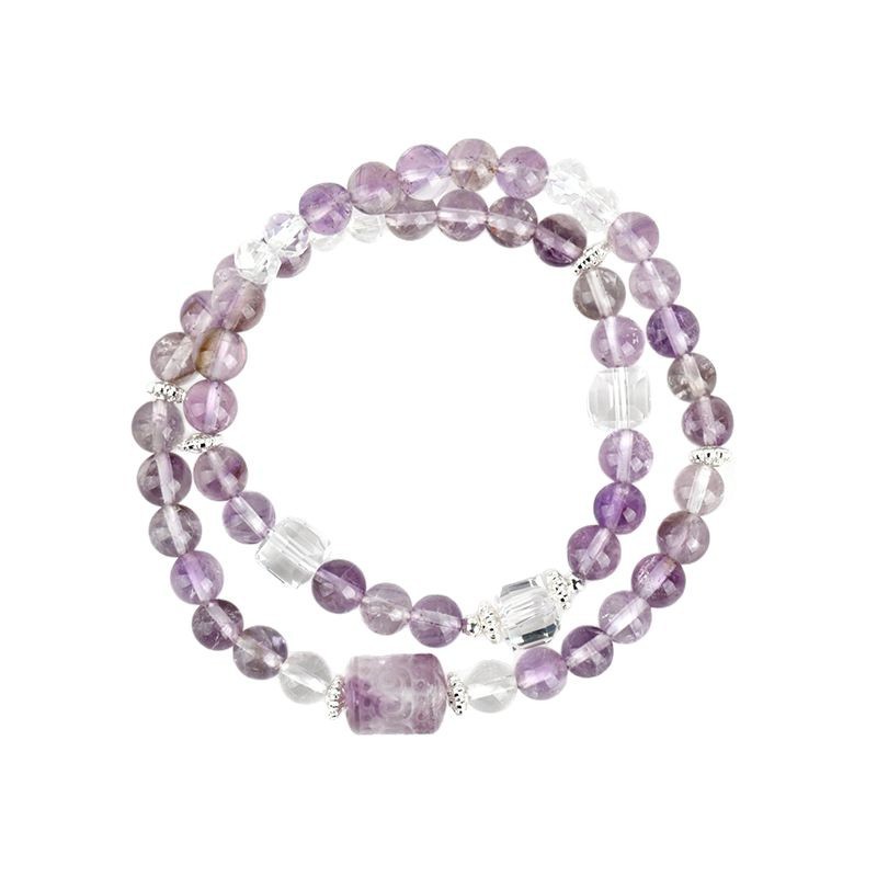 天然紫水晶回纹珠双圈手链新中式时尚原创女手串景区热销饰品