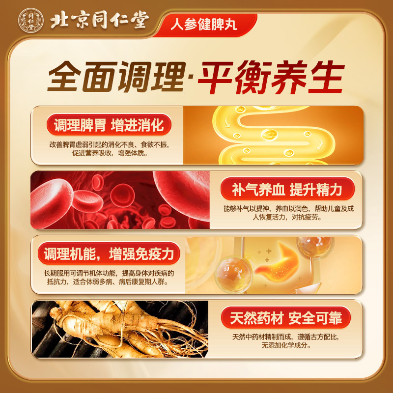 北京同仁堂人参健脾丸正品大蜜丸消食健脾祛湿调理脾胃虚弱湿气重