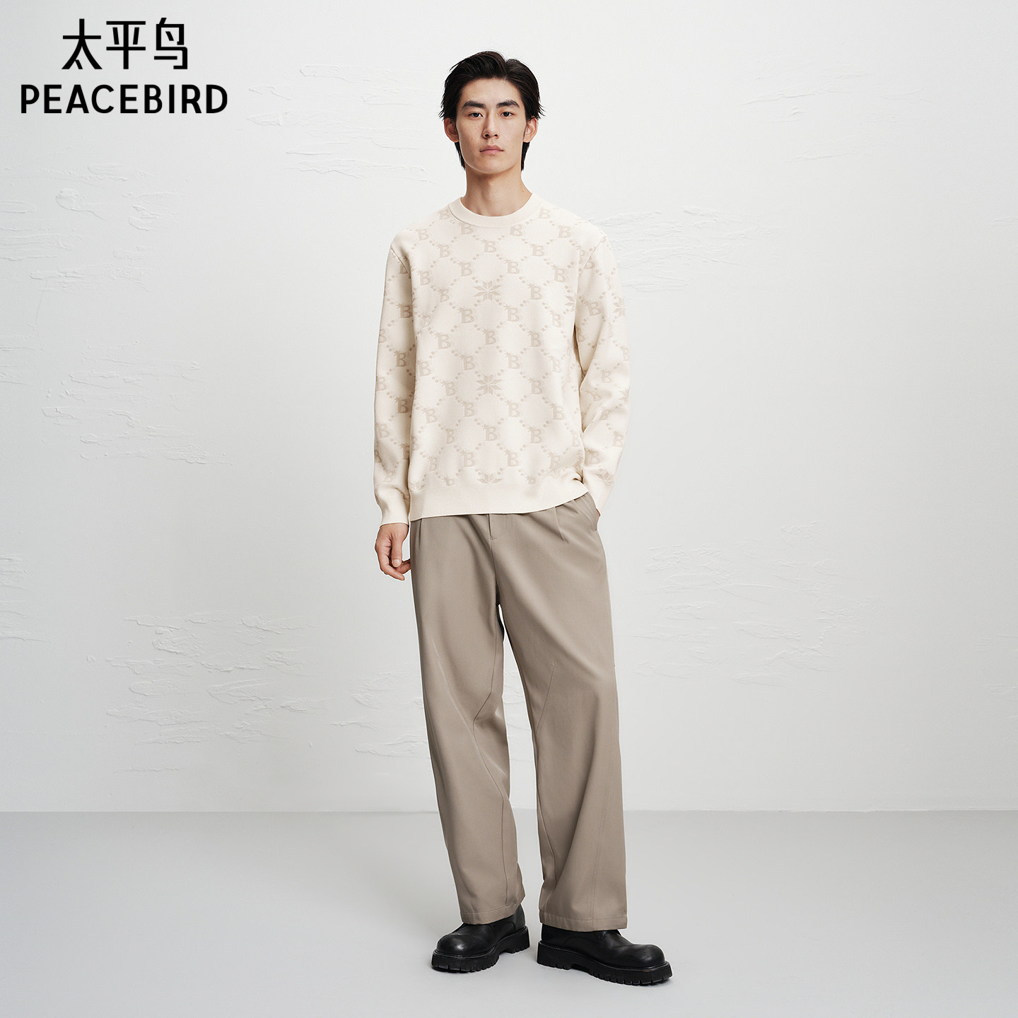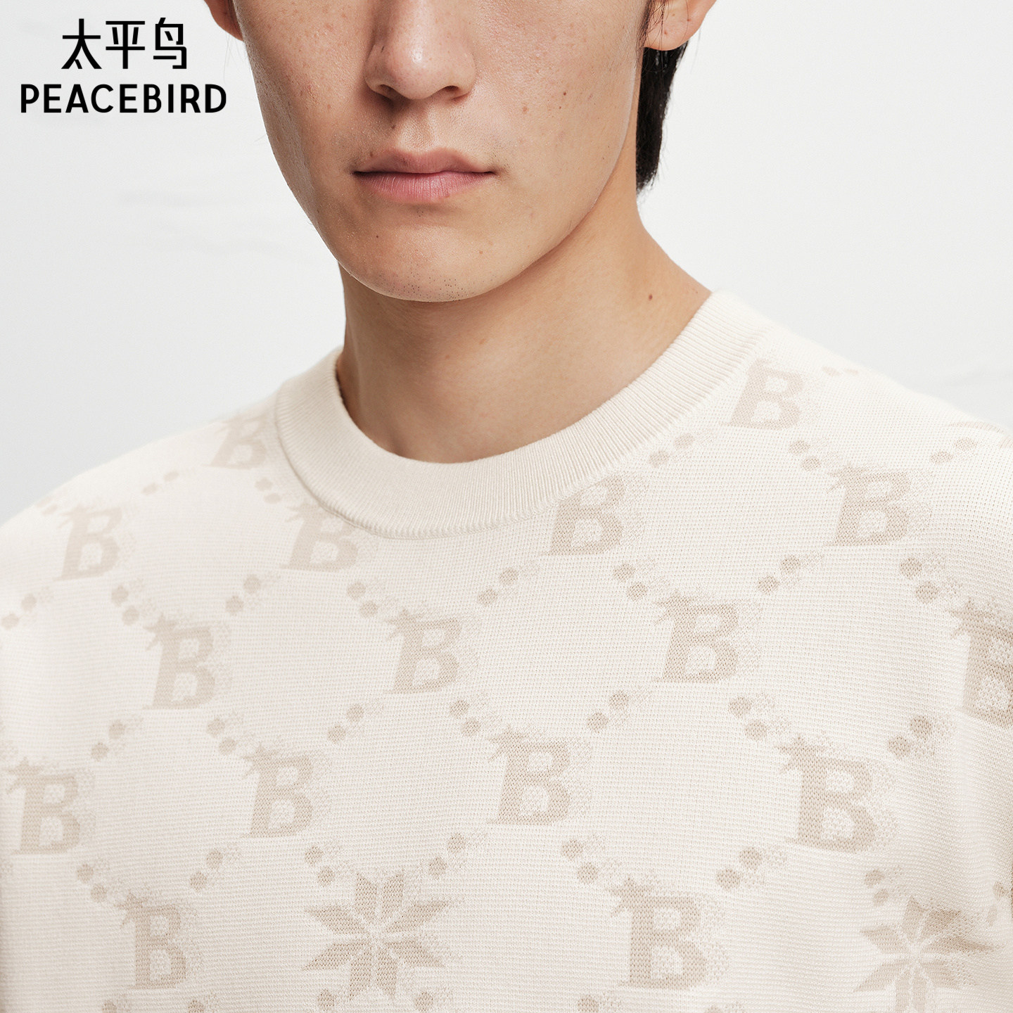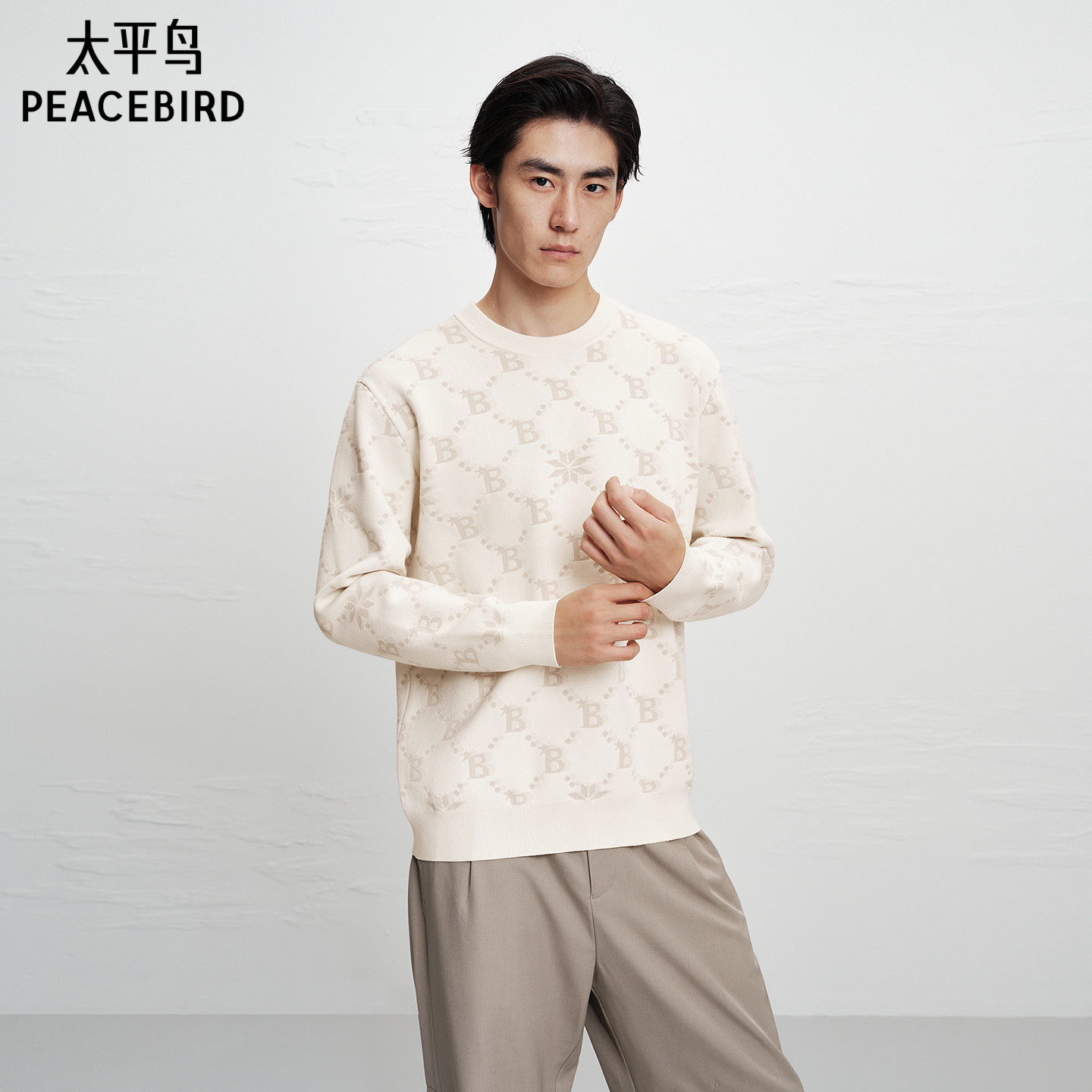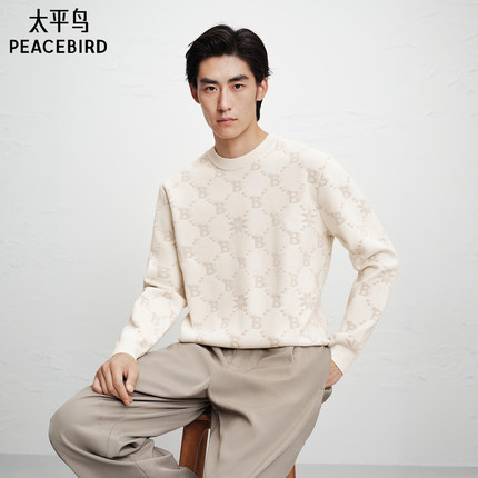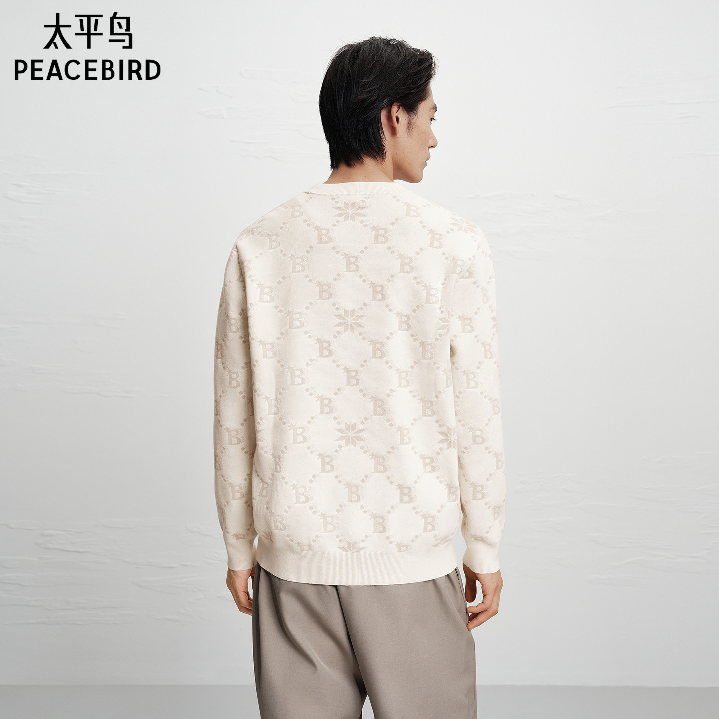 太平鸟男装毛衣冬季满版字母老花针织衫潮圆领宽松套头休闲毛衫