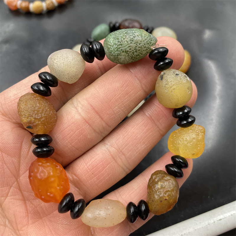 四海玉器 天然正品A货阿拉善玛瑙原石手链 男女款饰品玉石小手串