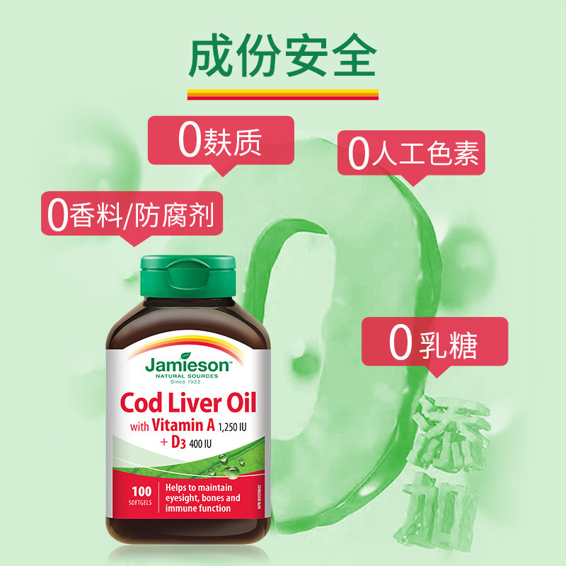 健美生进口深海鳕鱼鱼肝油软胶囊100粒维生素AD欧米茄3鱼油omega3