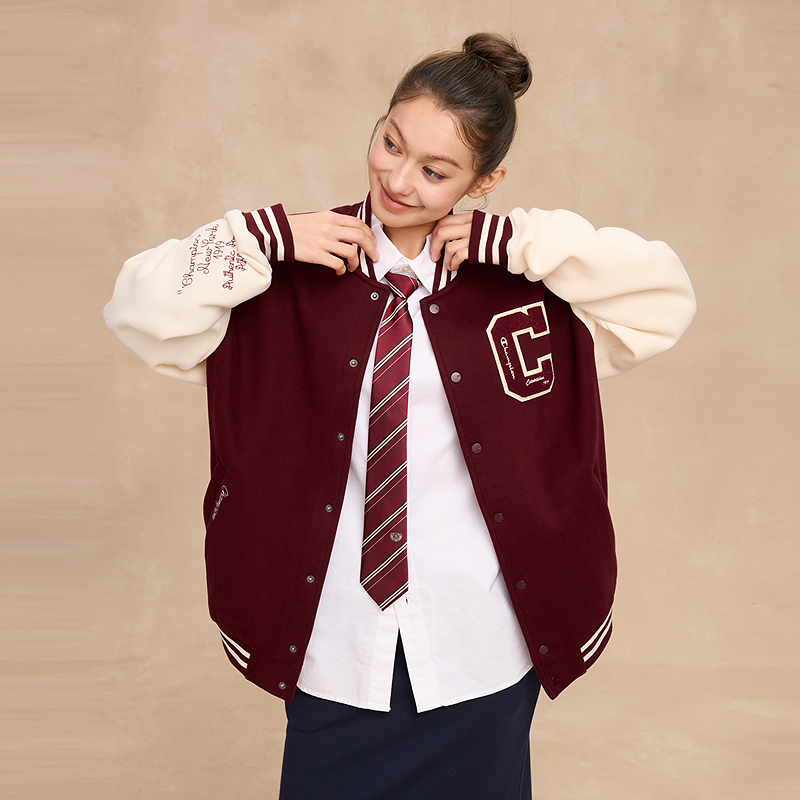 【丁禹兮同款】Champion冠军夹克女25冬新款情侣撞色棒球领外套男