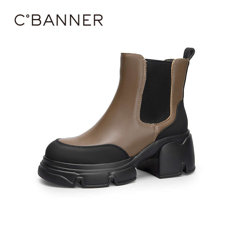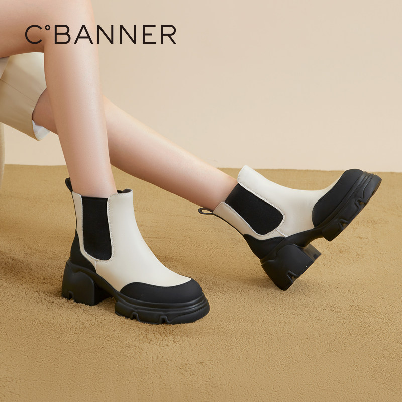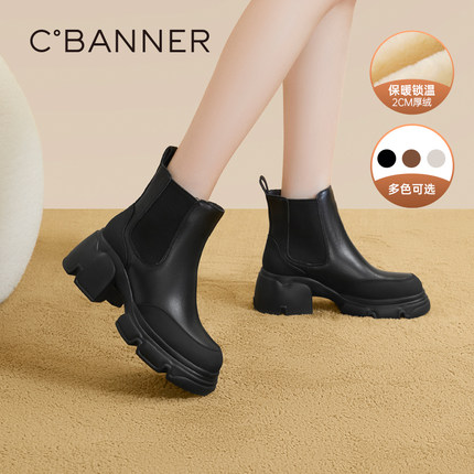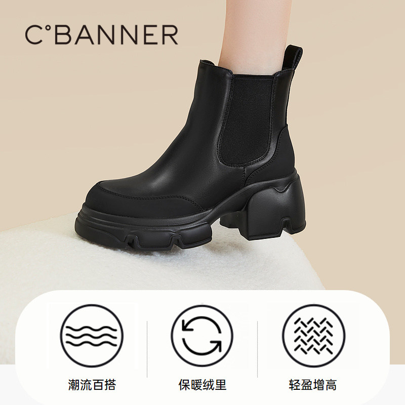 千百度厚底增高切尔西靴冬季新款烟筒靴真皮短靴女鞋保暖加绒