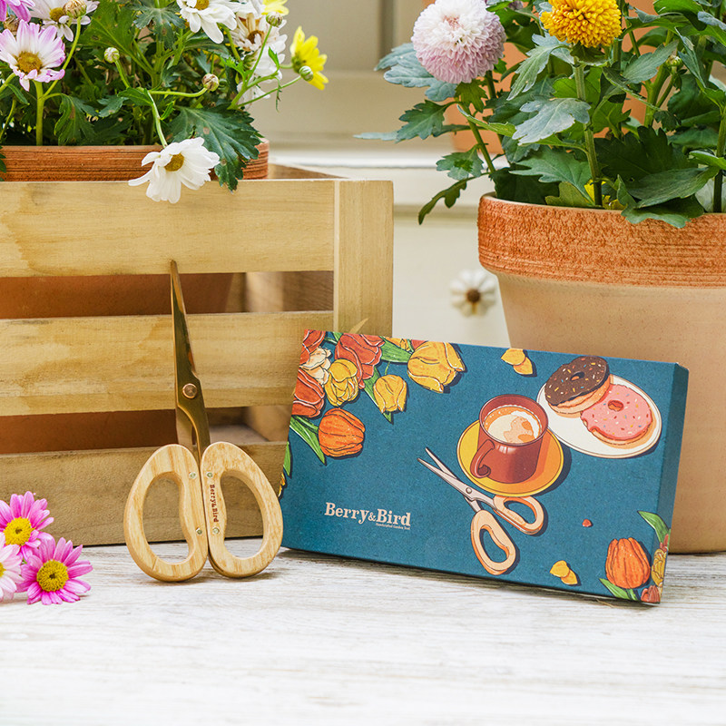 Berry&Bird园艺草花剪不锈钢实木柄盆栽修枝花艺剪刀插花工具家用