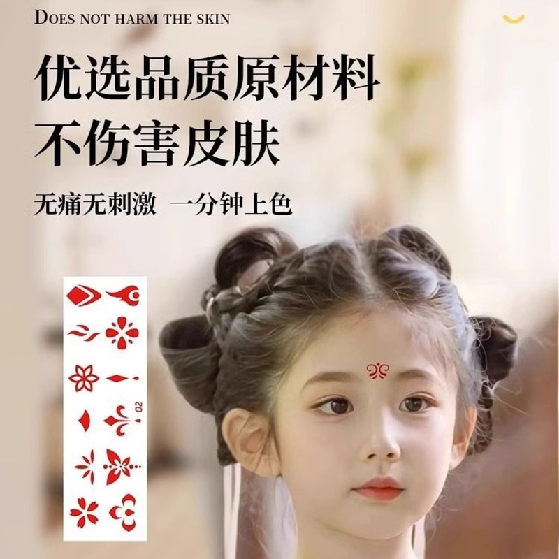 儿童眉心贴额头贴纸防水舞台表演古风印花学生新年汉服古装女额贴