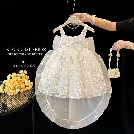 高端八音盒女童公主裙夏季洋气宝宝生日连衣裙主持人晚礼服蓬蓬裙
