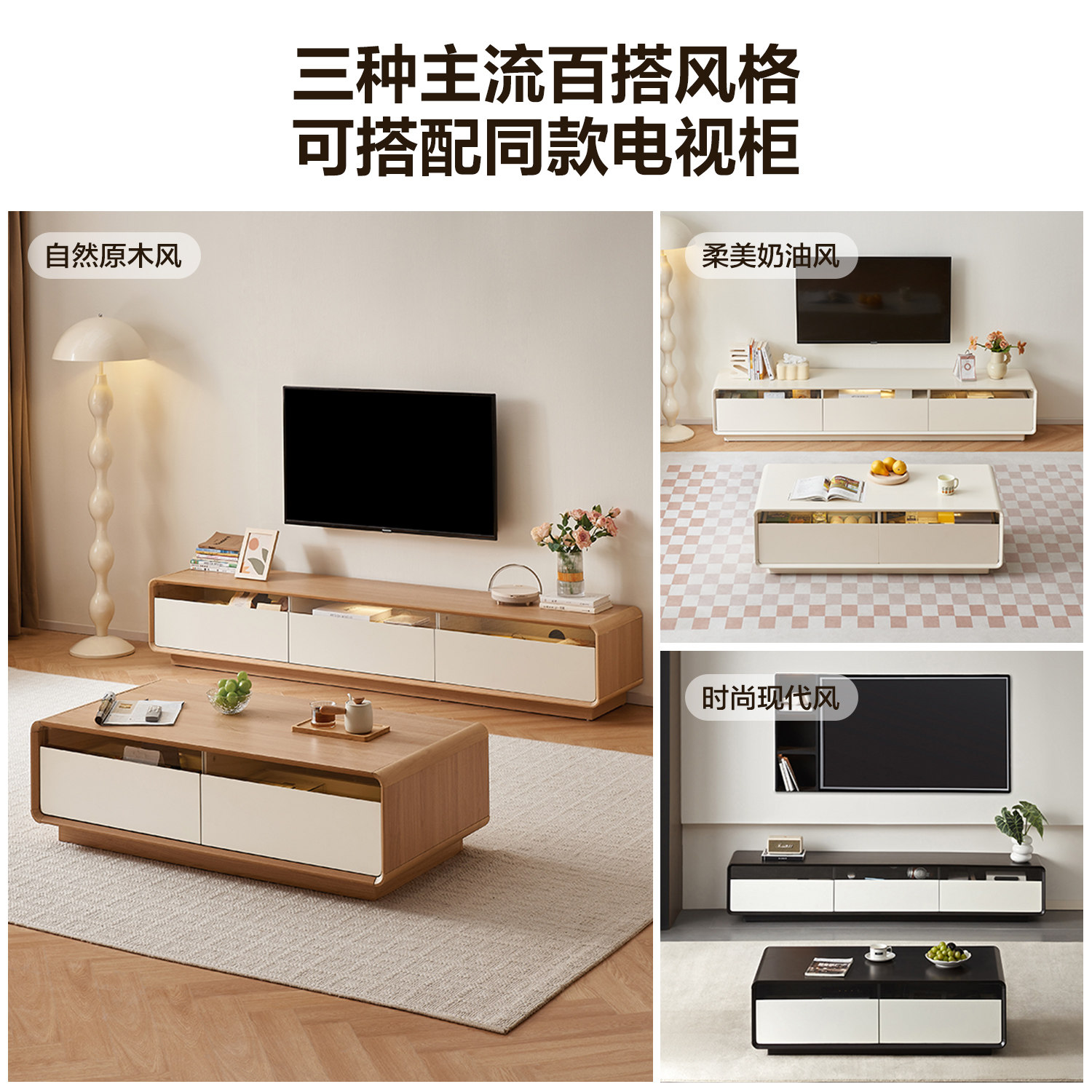 全友家居现代极简茶几电视柜组合小户型客厅家用收纳储物柜一体