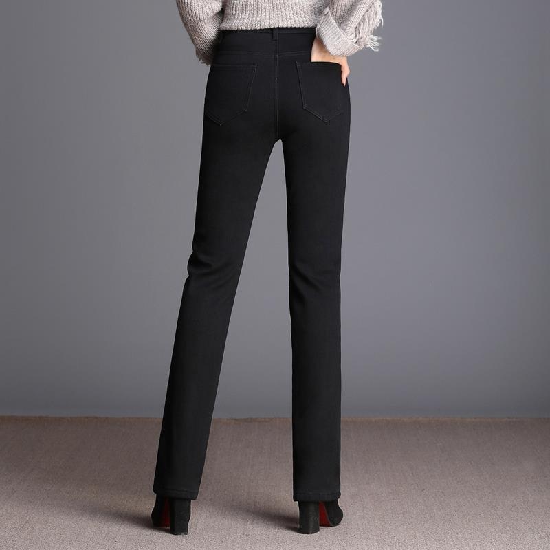 黑色烟管裤女秋冬加绒加厚高腰显瘦直筒裤女士新款大码胖mm牛仔裤