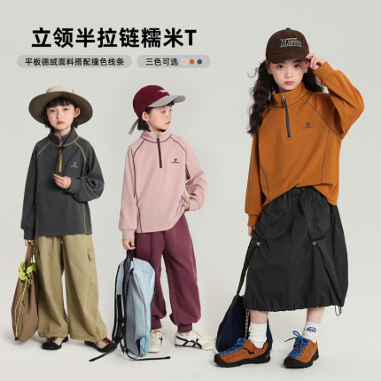 布丁哈鲁童装秋装女童圆领长袖2025春秋新款儿童立领半拉链长T