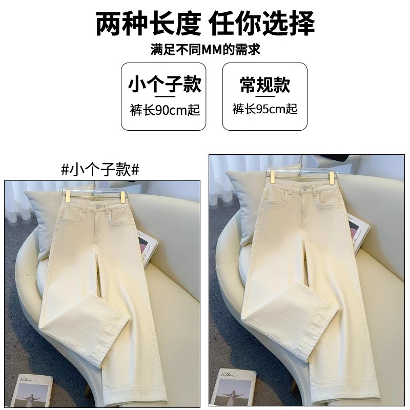 白色牛仔阔腿裤女春秋2025新款高腰宽松高级垂感浅色小个子直筒裤
