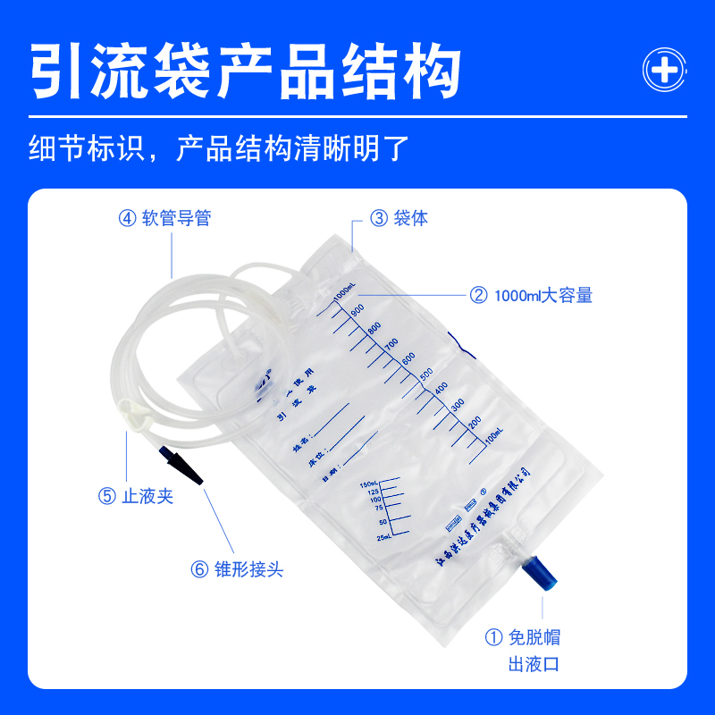 洪达一次性使用引流袋导尿袋包集接尿袋男女老人用医用家用1000ml