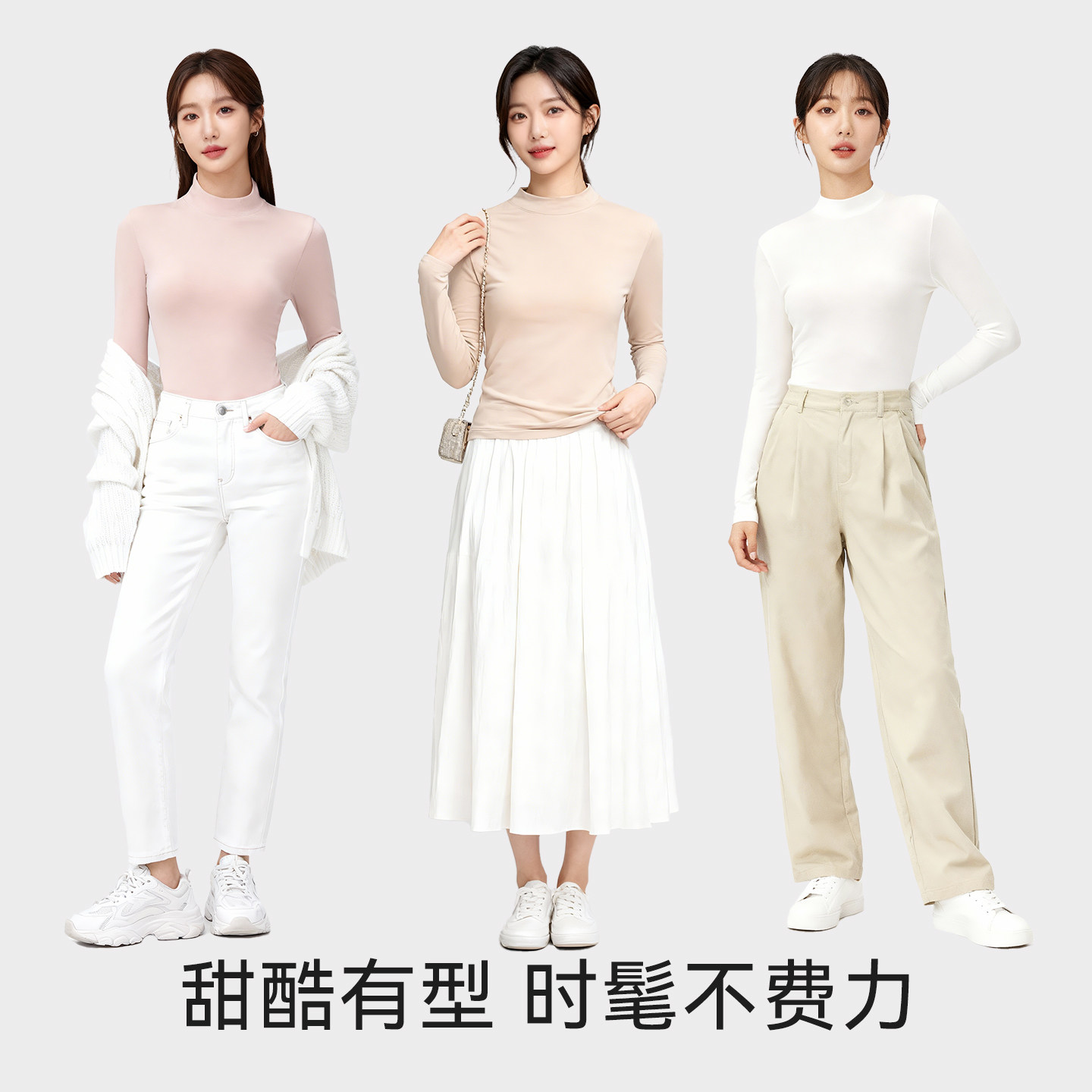 纯棉半高领打底衫女2025新款秋冬季中领薄款内搭外穿T恤长袖秋衣