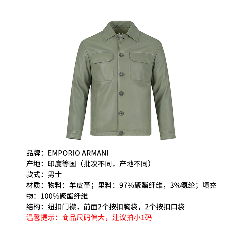 Armani阿玛尼EA新品男士羊皮夹棉夹克皮衣男装外套 H41R80 E1P80