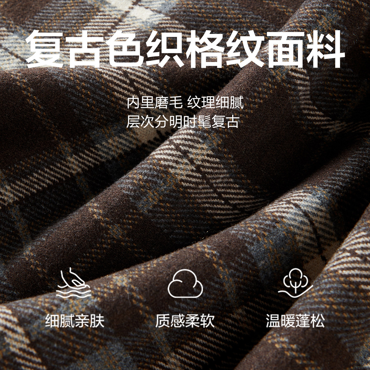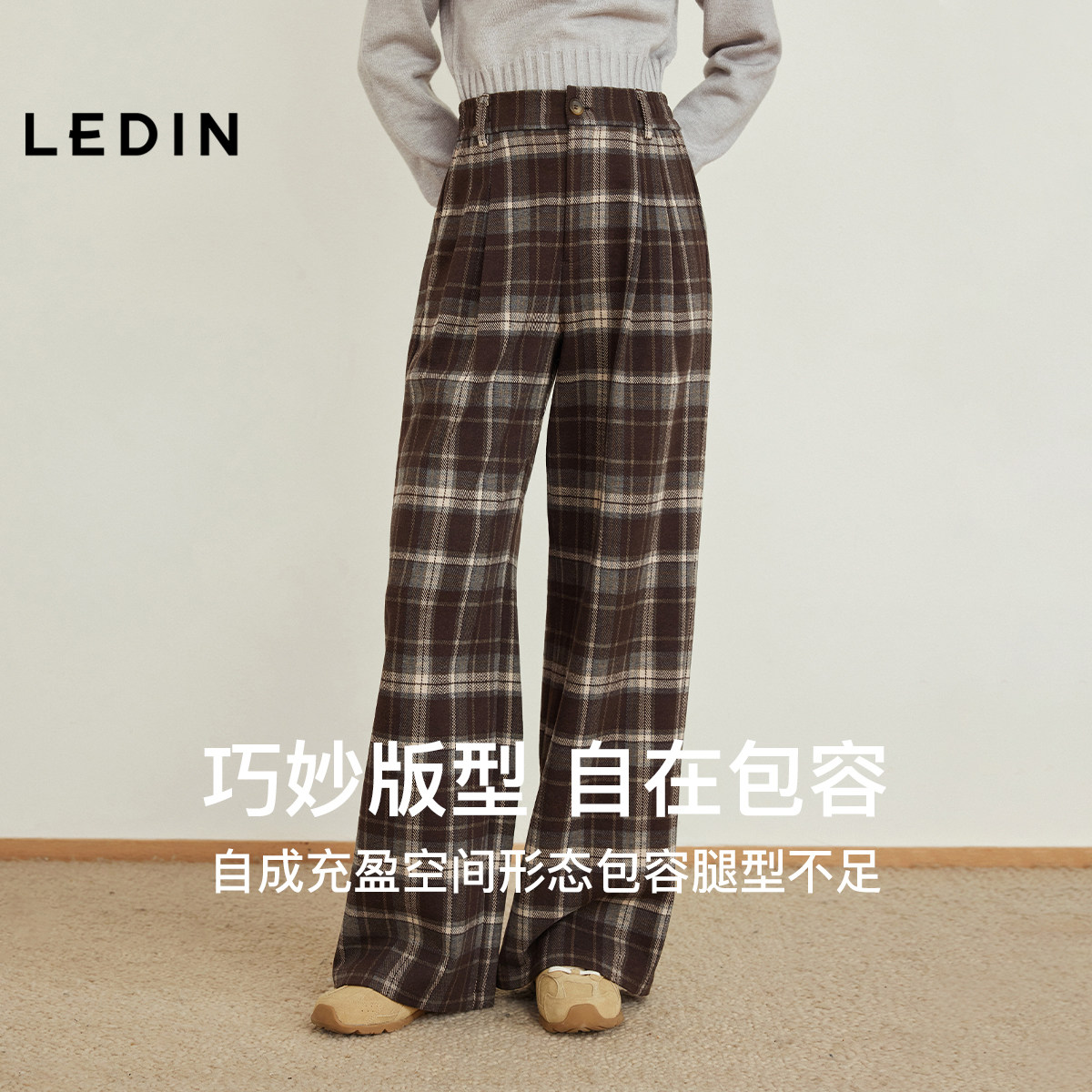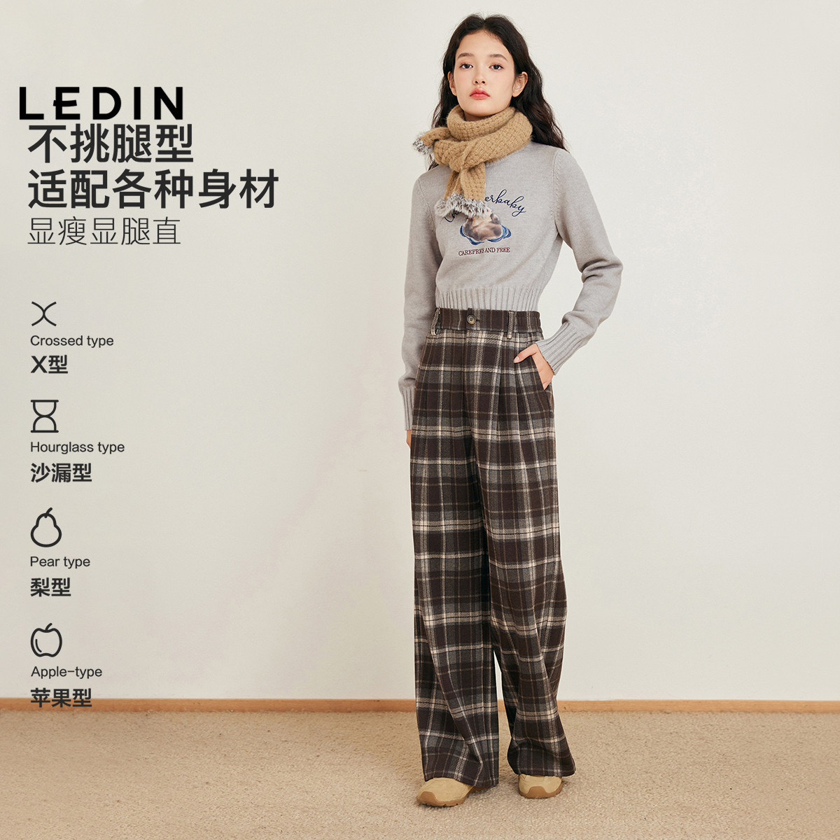 乐町磨毛格纹针织阔腿格纹裤子冬季复古学院风宽松休闲直筒格子裤
