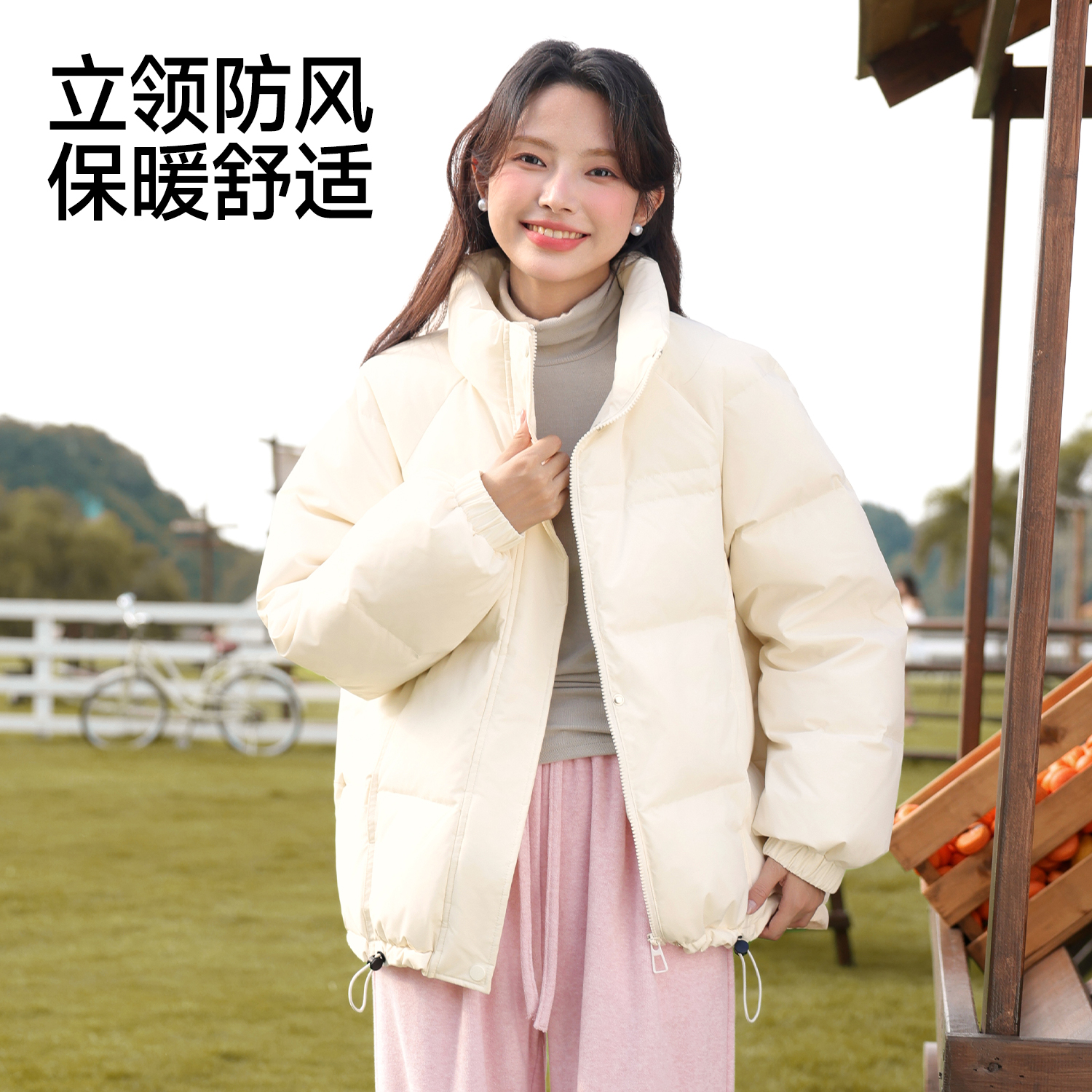 班尼路立领羽绒服女款2025新款冬季宽松休闲加绒保暖短款面包服N