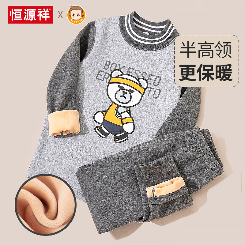 恒源祥男童保暖内衣套装加绒加厚儿童卫衣男孩中大童秋衣秋裤男厚